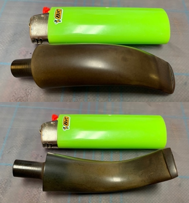 I removed the stem and took a photo of the pipe to give a sense of the whole. The stem is tapered and narrow.