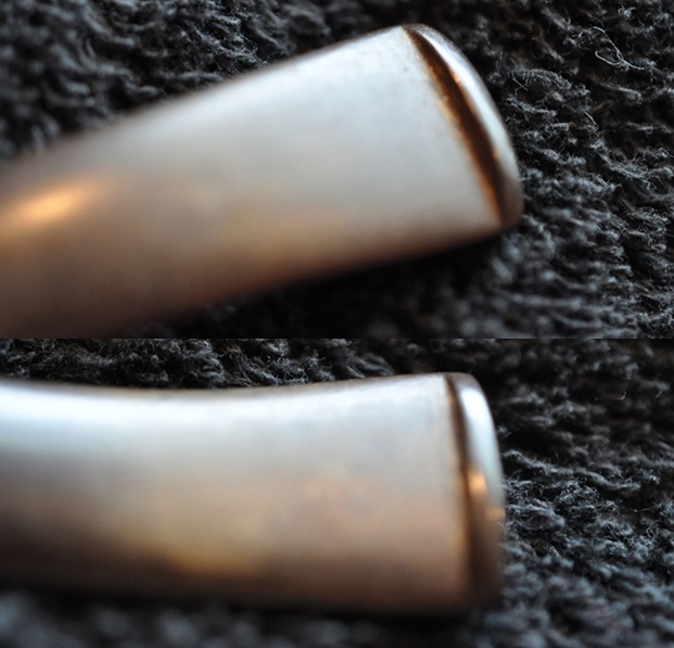 He took photos of the rim top and bowl to give a clear picture of the thickness of the cake and the overflow of lava on the rim top. He also took photos of the top and underside of the stem to show the oxidation and the light chatter and tooth marks.