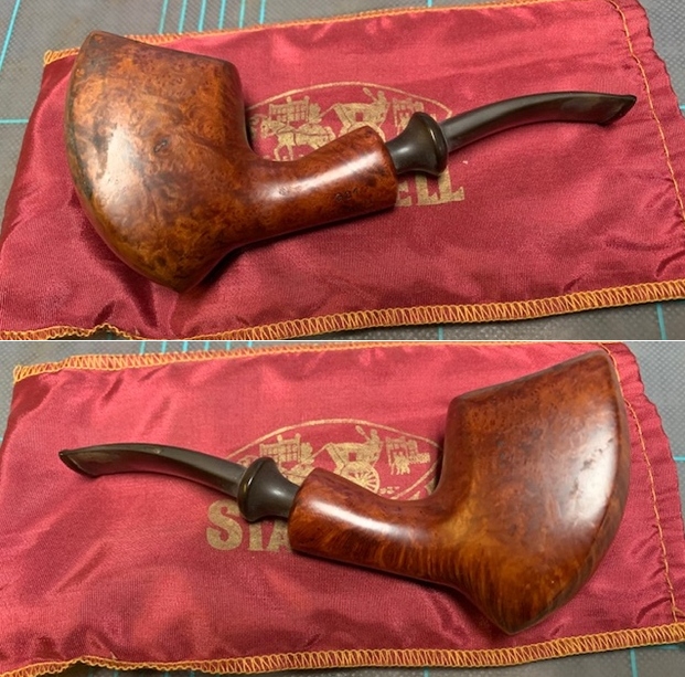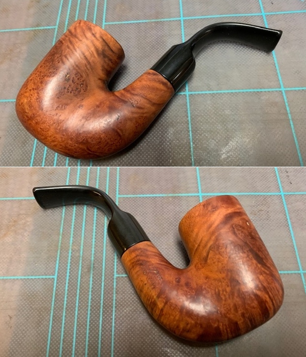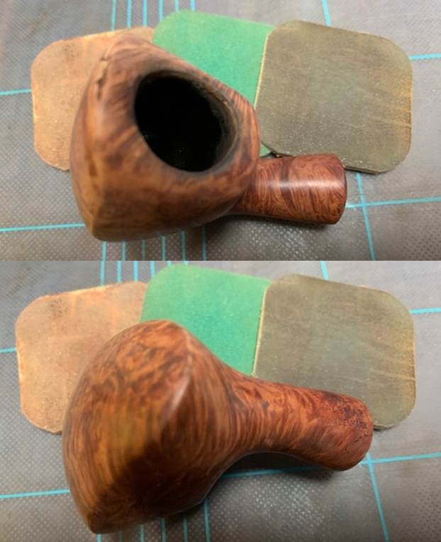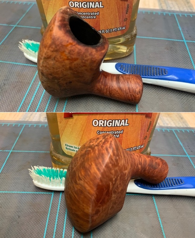 Jeff had cleaned up the pipe with his usual penchant for thoroughness. He reamed the pipe with a PipNet Pipe Reamer and cleaned up the remnants with a Savinelli Fitsall Pipe Knife. He scrubbed the bowl with undiluted Murphy’s Oil Soap with a tooth brush. He rinsed it under running warm water to remove the soap and grime. He cleaned out the inside of the shank and the airway in the stem with alcohol, cotton swabs and pipe cleaners. He soaked the stem in Before & After Deoxidizer and rinsed it off with warm water. I took photos of the pipe once I received it.
