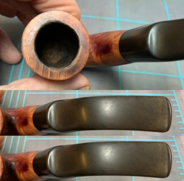He took photos of the rim top and bowl to give a clear picture of the condition of the bowl and rim top. He also took photos of the top and underside of the stem to show the oxidation and the chatter and tooth marks.