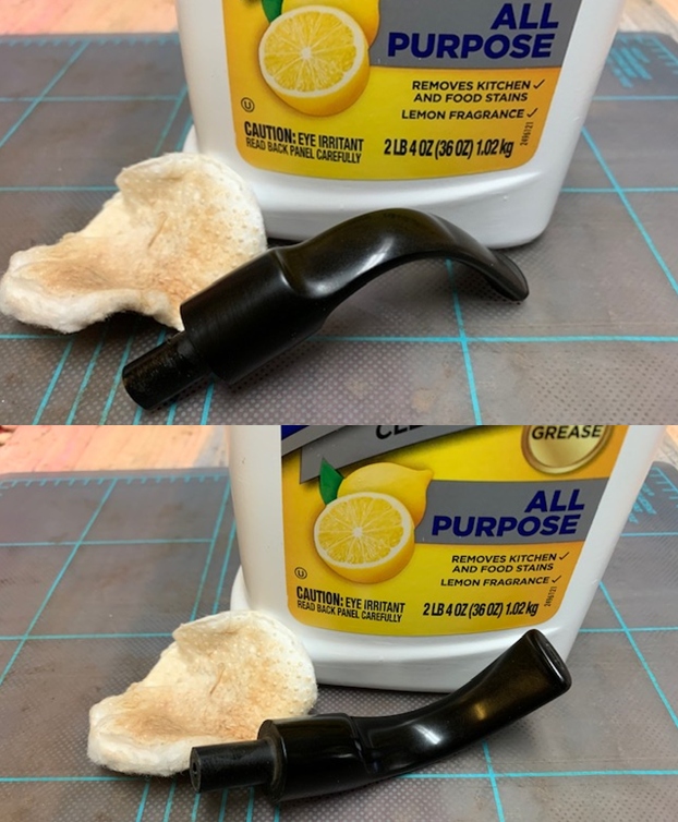 I set the bowl aside and turned to work on the stem. I scrubbed the stem with Soft Scrubb All Purpose cleanser to remove the oxidation. It did not take as much work as others had in the past and it looks very good.