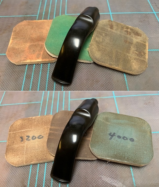 I polished the vulcanite stem with micromesh sanding pads – 1500-12000 grit pads. I wiped it down with a damp cloth after each sanding pad. I used Before & After Pipe Polish – both Fine and Extra Fine to further polish the stem.