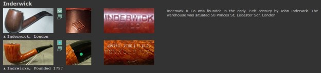 I turned to the listing for the Inderwick brand on Pipedia to see if I could find any further information on the brand (https://pipedia.org/wiki/Inderwick_%26_Co). It confirmed the information on the brand from Pipephil. It added some information regarding some of the pipes being made by Comoy’s. I quote in full the article and include a photo of the Carnaby Street stamp.