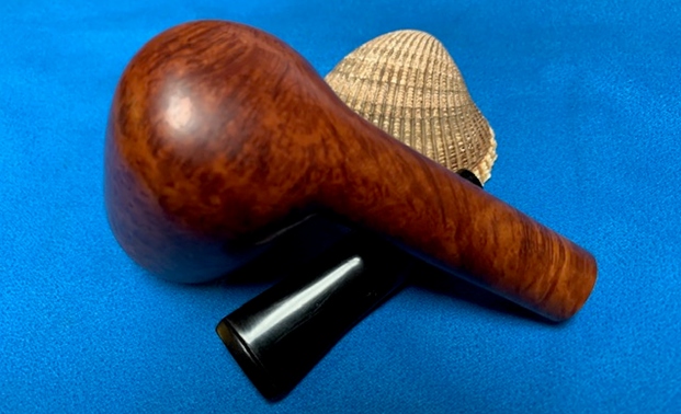 I removed the stem and took a photo of the pipe to give a sense of the whole. The stem is a saddle style with a flared button.