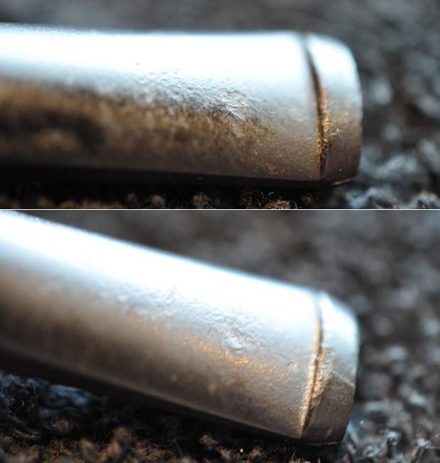 I used 220 grit sandpaper to smooth out the repairs on the surface and the tooth chatter and marks and blend them into the stem surface. I started the polishing with 400 grit wet dry sandpaper.