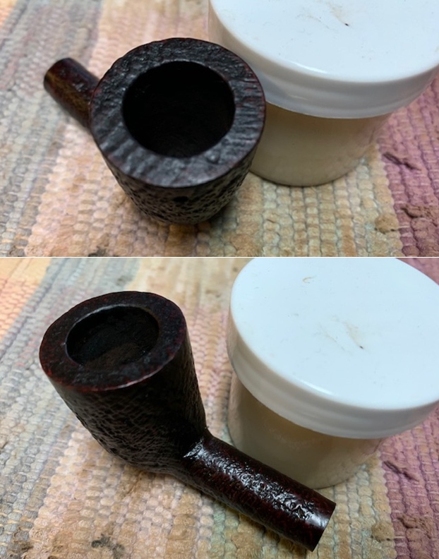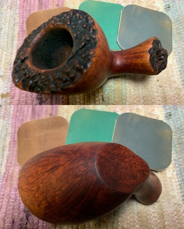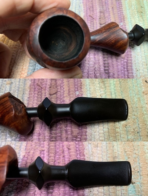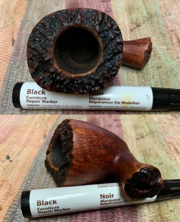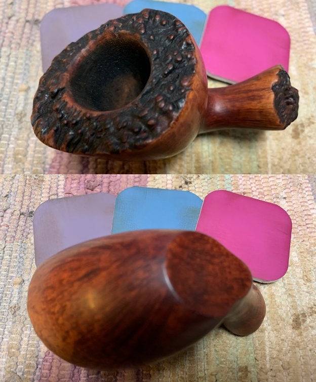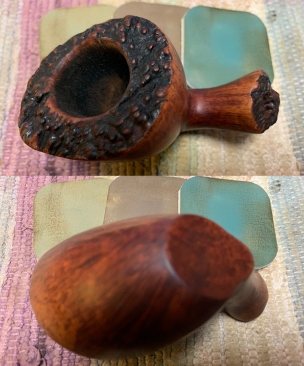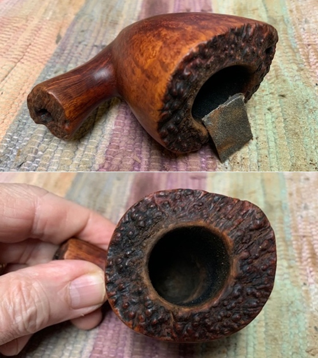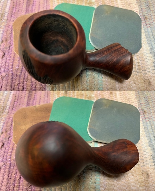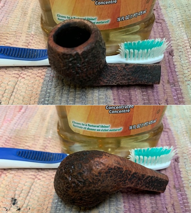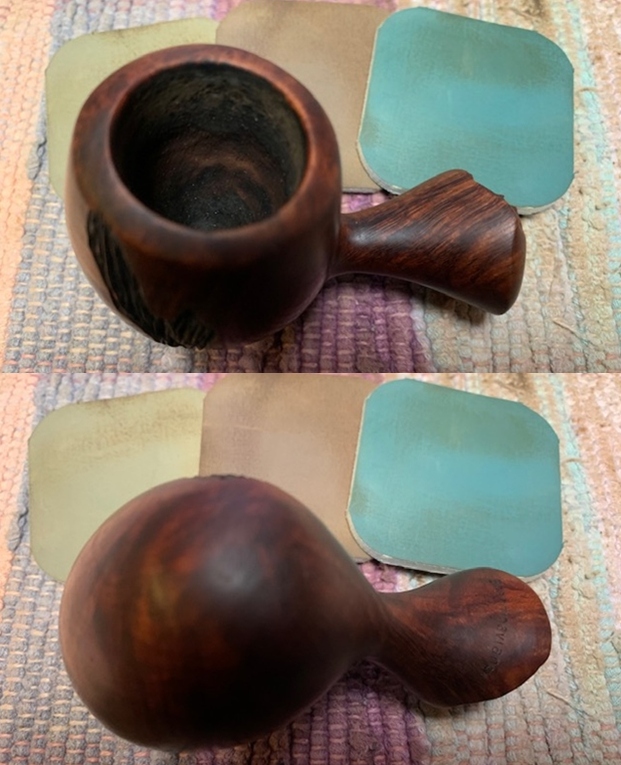 It was time to work on the pipe. Jeff had cleaned up the pipe with his usual penchant for thoroughness. He reamed the pipe with a PipNet Pipe Reamer and cleaned up the remnants with a Savinelli Fitsall Pipe Knife. He scrubbed the bowl with undiluted Murphy’s Oil Soap with a tooth brush. He rinsed it under running warm water to remove the soap and grime. He cleaned out the inside of the shank with alcohol, cotton swabs and pipe cleaners. I took photos of the pipe bowl once I received it.