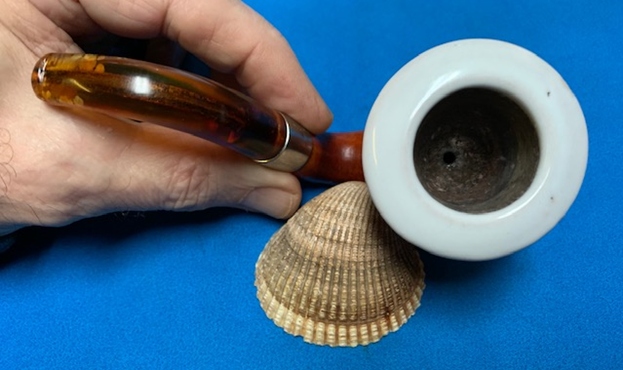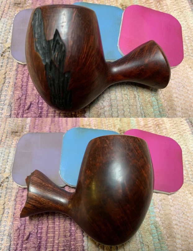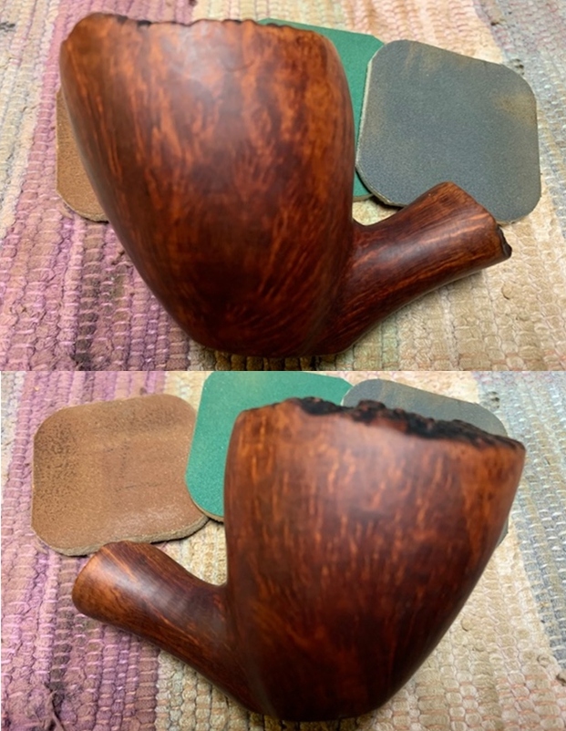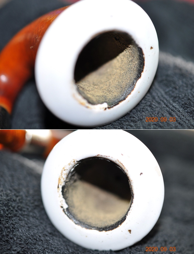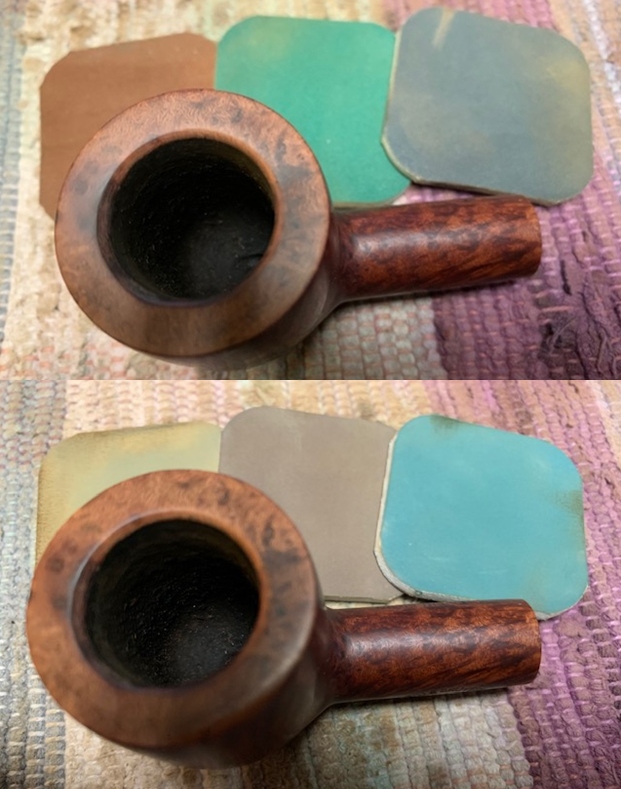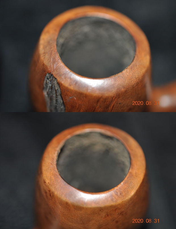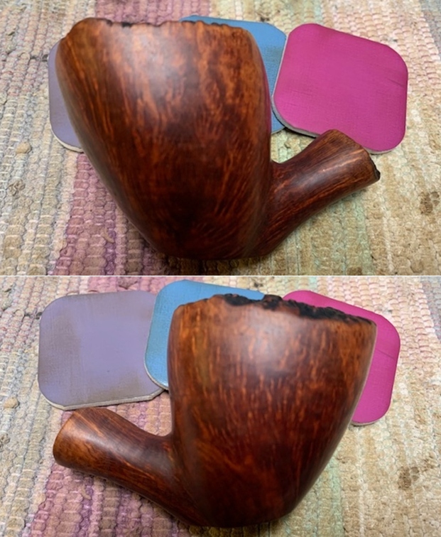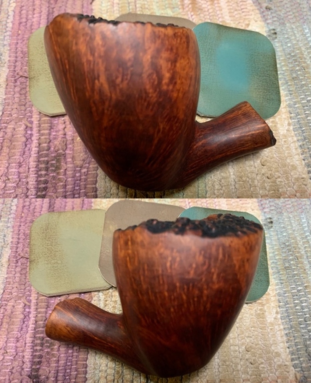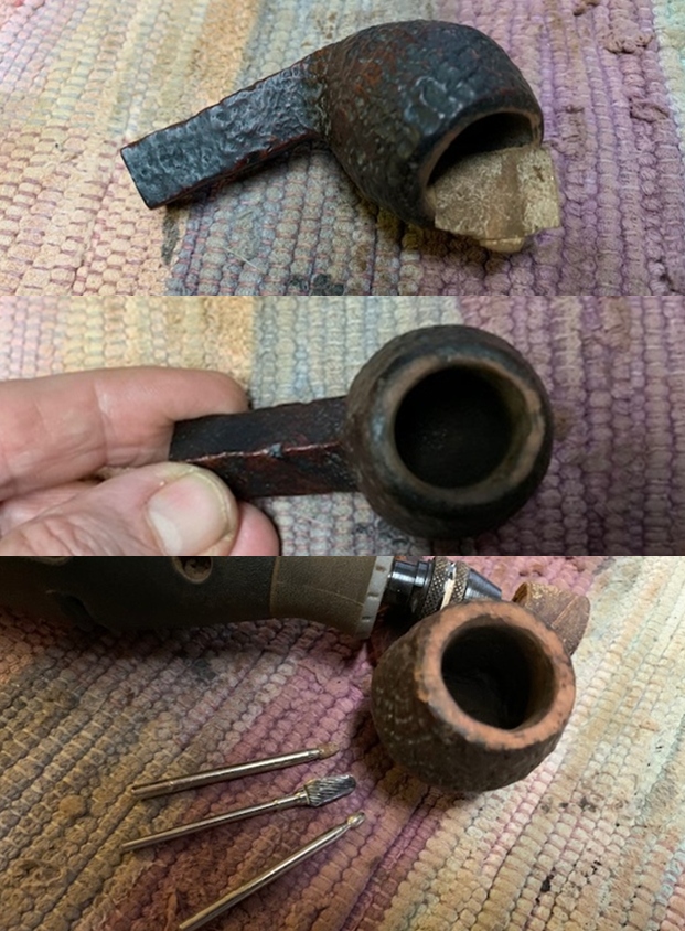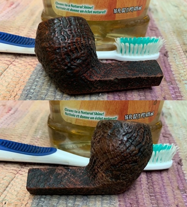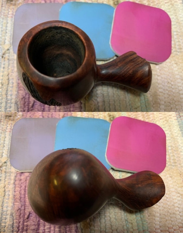 It was time to work on the pipe. Jeff had cleaned up the pipe with his usual penchant for thoroughness. He reamed the pipe with a PipNet Pipe Reamer and cleaned up the remnants with a Savinelli Fitsall Pipe Knife. He scrubbed the bowl with undiluted Murphy’s Oil Soap with a tooth brush. He rinsed it under running warm water to remove the soap and grime. He cleaned out the inside of the shank with alcohol, cotton swabs and pipe cleaners. I took photos of the pipe bowl once I received it.