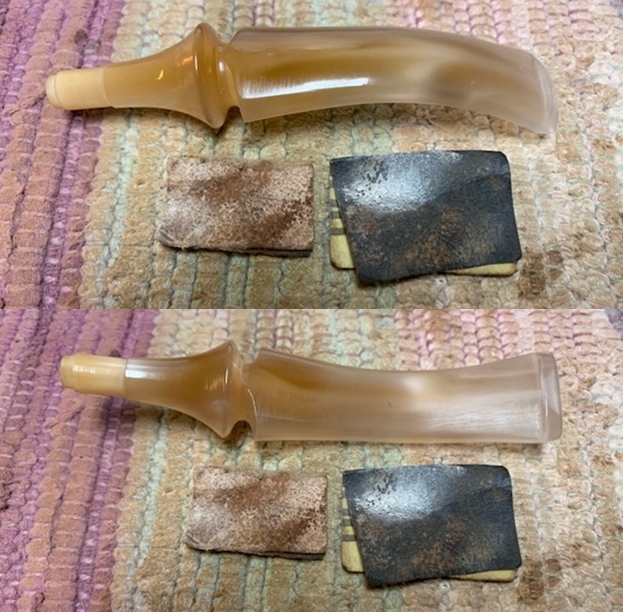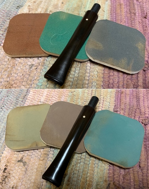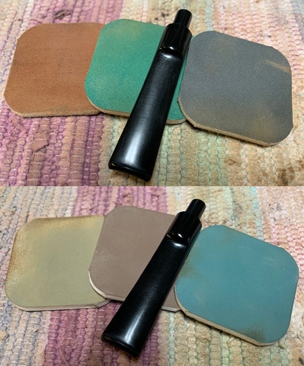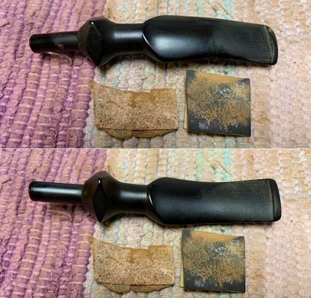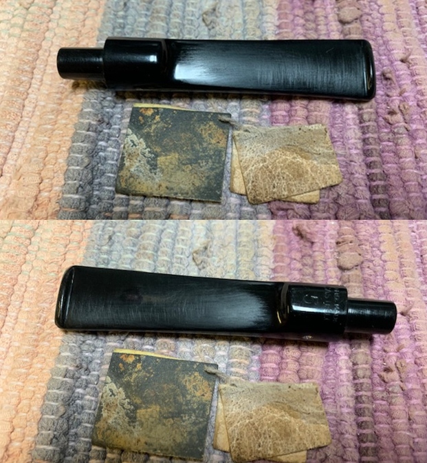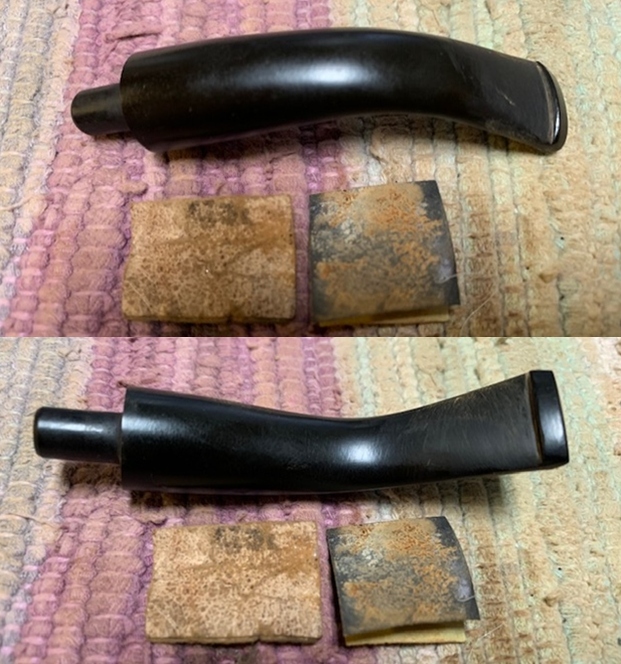 I polished the vulcanite stem with micromesh sanding pads – 1500-12000 grit pads. I wiped it down with a damp cloth after each sanding pad. I used Before & After Pipe Polish – both Fine and Extra Fine to further polish the stem.