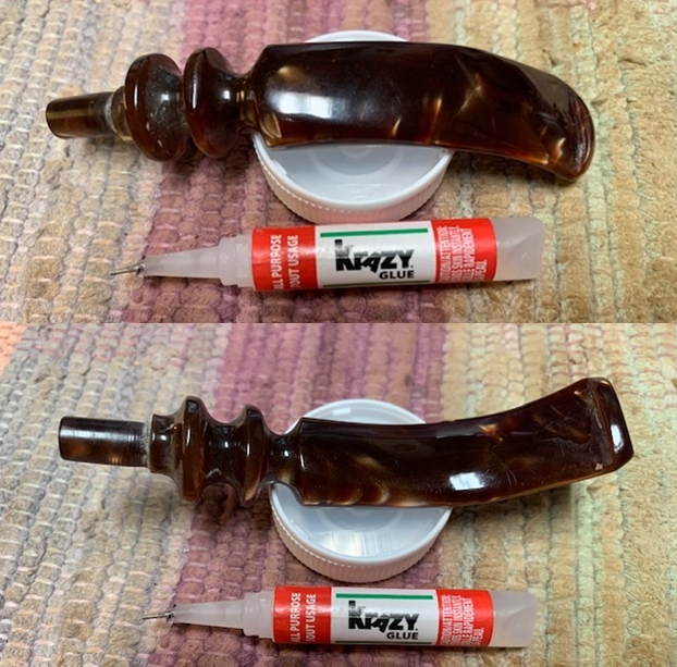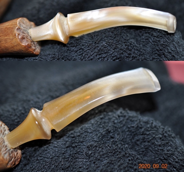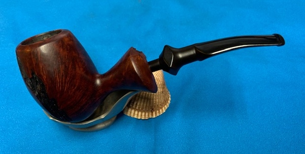 I put a pipe cleaner in the stem and heated it with the heat gun until the vulcanite was flexible. I bent it so that the pipe would sit comfortably in the mouth and hang nicely.