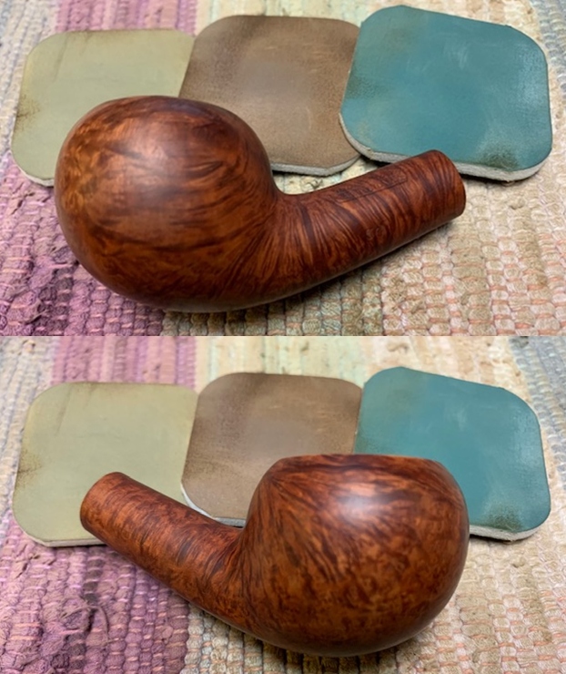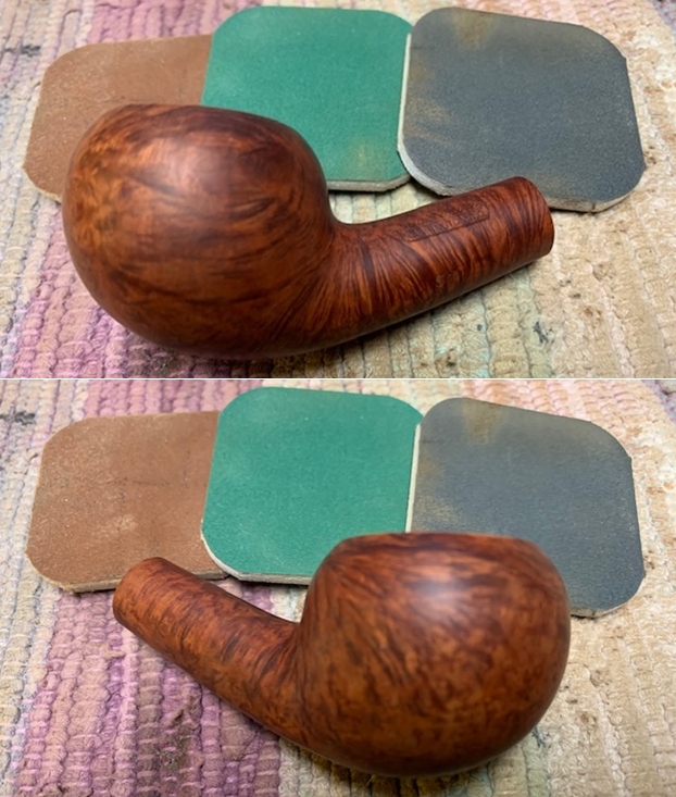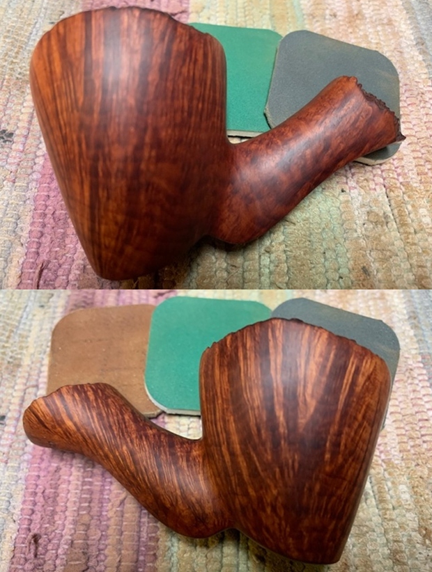 I removed the new stem and turned my attention to the bowl for a while. I would come back to polishing the stem shortly. I polished the briar with micromesh sanding pads – 1500-12000 grit pads. I wiped the bowl down after each pad with a damp cloth.