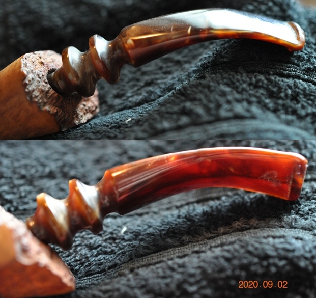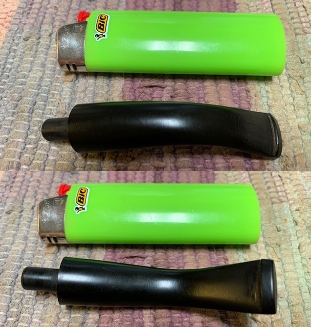 I sanded the casting marks on the sides of the stem with my Dremel and sanding drum to smooth them out. I put the stem on the bowl and took photos. I would need to remove some of the vulcanite on the top of the stem to match the diameter of the shank. I liked the overall look of the new stem.
