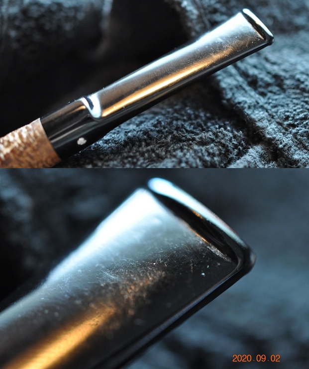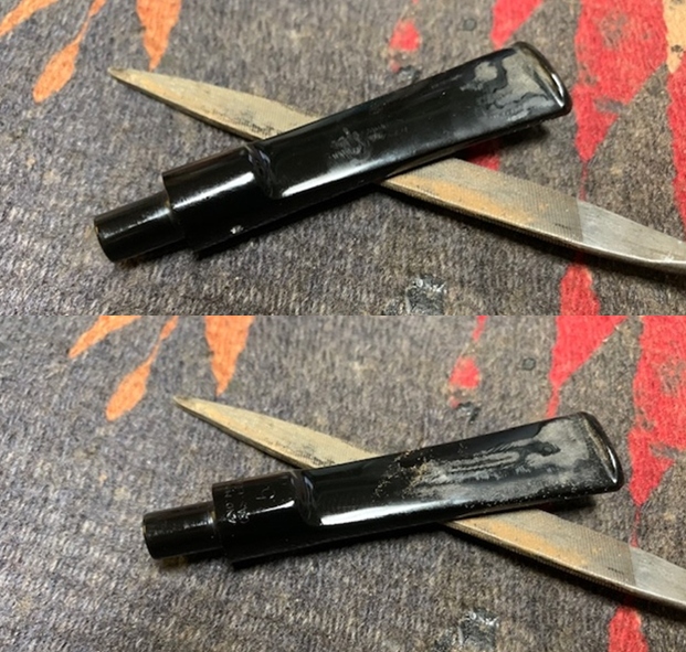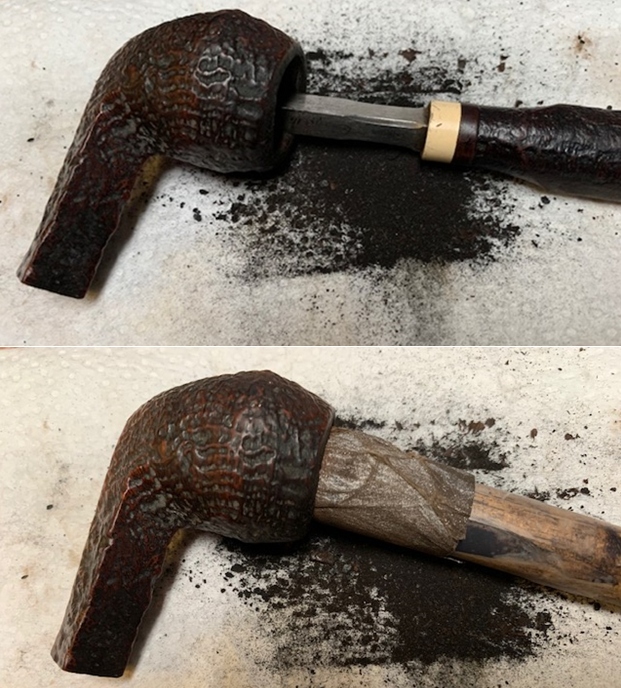 I used the Dremel and sanding drum to remove the excess vulcanite from the top part of the stem to match the shank.