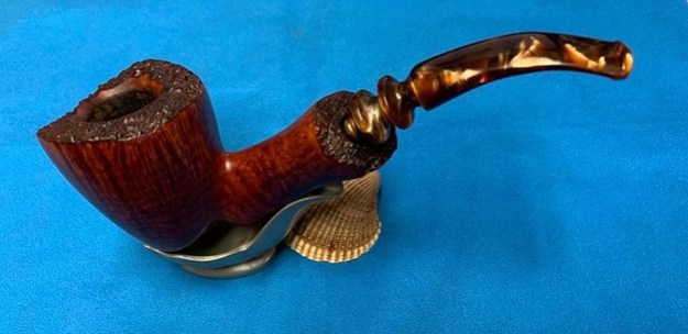 This Weber Imported Briar Rusticated Oom Paul came out really well with the brass band and the new stem. The briar and vulcanite stem taper make for a great looking pipe now that it has been restored and restemmed. I put the stem back on the bowl and carefully buffed the pipe with Blue Diamond on the buffing wheel using a light touch on the briar. I gave the bowl and the stem multiple coats of carnauba wax on the buffing wheel and followed that by buffing the entire pipe with a clean buffing pad. I hand buffed the pipe with a microfiber cloth to deepen the shine. The finished Weber Oom Paul fits nicely in the hand and hangs well in the mouth. Once it is packed with tobacco and fired up I am sure that it will feel great. Give the finished pipe a look in the photos below. The dimensions of the pipe are Length: 5 inches, Height: 2 inches, Outside diameter of the bowl: 1 ¼ inches, Chamber diameter: ¾ of an inch. If you are interested in adding this pipe to your collection send me a message or an email. Thanks for reading this blog and my reflections on the pipe while I worked on it. There are many more to come!
