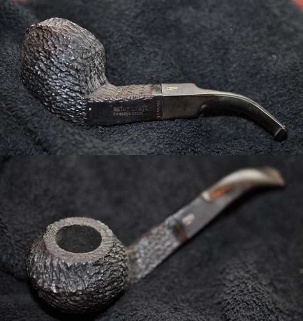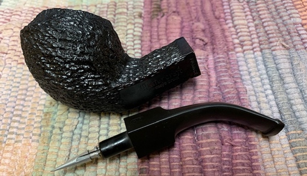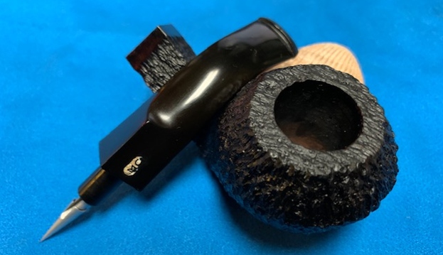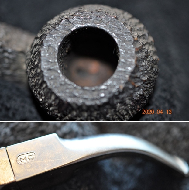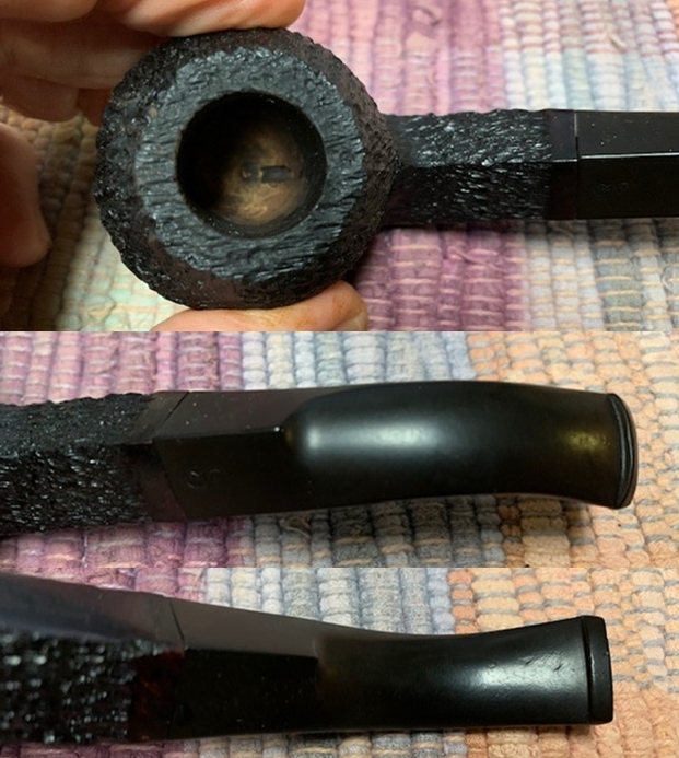 Now I had a pretty good idea of how the pipe was stamped and made. With that information I moved forward to work on the pipe itself and see what I had to do with it. Jeff had done an amazing job in removing all of the cake and the lava on the rim top. He had reamed the bowl with a PipNet Pipe Reamer and cleaned up the remnants with a Savinelli Fitsall Pipe Knife. He took the cake back to bare briar so we could check the walls for damage. He scrubbed the exterior of the bowl with Murphy’s Oil Soap and a tooth brush to remove the grime on the bowl and rim and was able to remove the lava and dirt. He cleaned out the interior of the bowl and shank with pipe cleaners, cotton swabs and alcohol until they came out clean. He cleaned the stem with Soft Scrub to remove the grime on the exterior and cleaned out the airway with alcohol, cotton swabs and pipe cleaners. He soaked the stem in Before & After Deoxidizer and rinsed if off and recleaned the inside of the stem with alcohol and pipe cleaners. I took photos of the pipe before I started my part of the restoration.