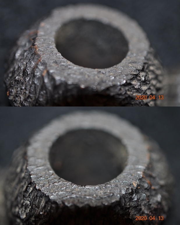 I took some photos of the rim top and stem. You can see damage to the rim top and back outer edge of the bowl. The lava on the rim top cleaned up very well but the inner beveled edge. The close up photos of the stem shows that there are light tooth marks and chatter on the top and underside of the stem near the button.