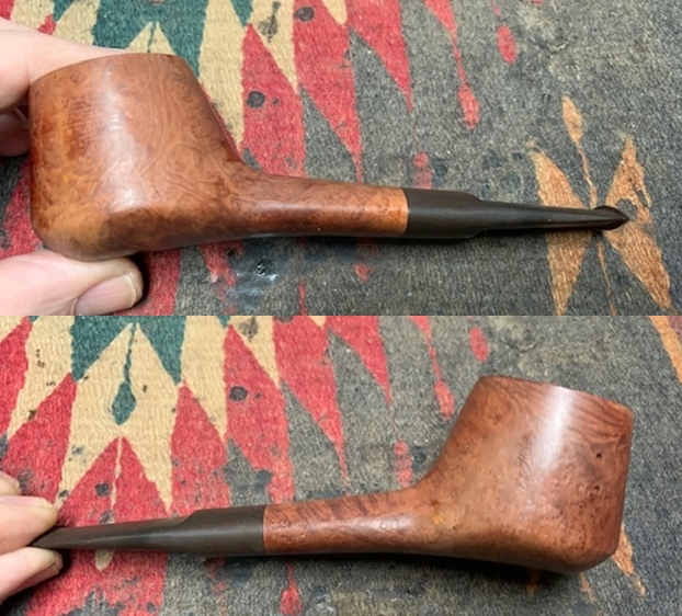 Unfortunately none of these pipes that I’ve seen have astounded me with grain or general appearance. Having said this, these pipes smoke nicely and are a great value if you can find them. I have one that my father found at an Antique Show in the South. There’s another author shape on reborn pipe’s blog that someone refinished because of the amount of fills in the pipe. He also states it’s a wonderful smoker (Editor’s note: This is my pipe and the write up I did on the blog). These pipes are likely from the late 60s through the early 70s. I believe many pipes after this period were created en masse at a factory in the US. It is unclear what stamp was used on these later pipes…