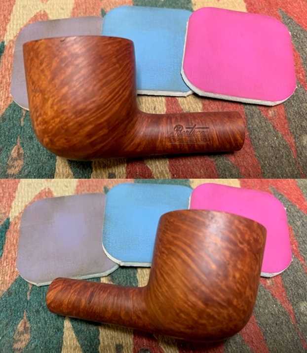 As I have worked on Bertrams I have written on the brand and have included the following information. If you have read it in past blogs, you can skip over it. If you have not, I have included the link to Bertram history and information. I would recommend that if you don’t know much about them take some time to read the background. I include a link to the write up on Pipedia (http://pipedia.org/wiki/Bertram). Bertram pipes were based out of Washington DC. They were popular among famous politicians and celebrities of the time. They made many products for them from FDR’s cigarette holders to Joseph Stalin’s favorite pipe. They were considered some of the best America had to offer till they finally closed their doors in the 70s. Bertram graded their pipes by 10s and sometimes with a 5 added (15, 25, 55 etc.), the higher the grade the better. Above 60s are uncommon and 80-90s are quite rare. I have worked on one 120 Grade billiard. I have several blogs that I have written on rebornpipes that give some history and background to Bertram pipes. (https://rebornpipes.com/2015/06/16/an-easy-restoration-of-a-bertram-grade-60-217-poker/).