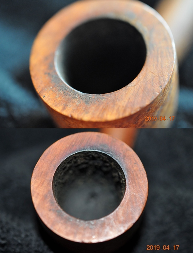 He took photos of the rim top and bowl to give a clear picture of the thickness of the cake and the lava on the rim top. He also took photos of the top and underside of the stem to show the oxidation, calcification, chatter and tooth marks. Otherwise the stem is quite clean.
