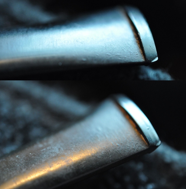 The rim top cleaned up really well with the lava coat removed. The inner and outer edge of the rim looked good. The stem surface looked very good with a few small tooth marks and chatter on both sides near the button.