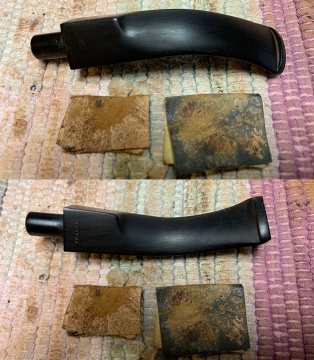 I set the bowl aside to work on the stem. I put the stem in the Pipe Stem Oxidation Remover from Briarville USA. I am still experimenting with the product to remove the oxidation that remained on the stem. I let it soak for 1 hour and took it out of the bath and wiped it down with a paper towel. The photos show the stem at this point.