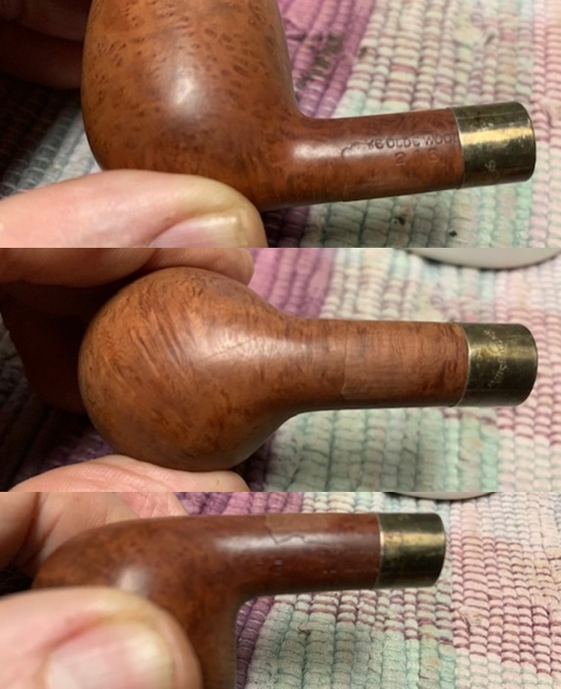 … Ye Olde Wood Stamp: Sometime around 1913, the “Ye Olde Wood” stamp made its appearance on selected pipes. An example exists stamped on a 1913 date hallmarked pipe.