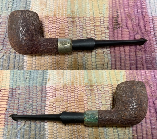 Not too long ago I was on one of the Facebook pipe groups and David Andrew Goostree of Banjo Bob’s Fine Pipes posted a picture of a Dunhill LB with a ruined bowl – vertical cracks all around the bowl that he was willing to part with. I quickly wrote him a note to see what he wanted for it as I had the above LB that needed the stem from his ruined bowl. We exchanged a few messages back and forth and he sent the pipe to me. It arrived in Canada yesterday (Monday) and David had included a small sample of Old Gowrie in the box. Here are a few pictures that David sent me of the pipe before he sent it.