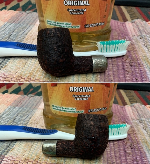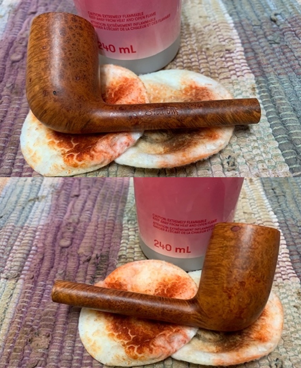 The stem had some tooth marks in the surface on both sides ahead of the button. I “painted” the surface with the flame of a Bic lighter and the tooth marks lifted. I would easily be able to sand the remnants out with micromesh.