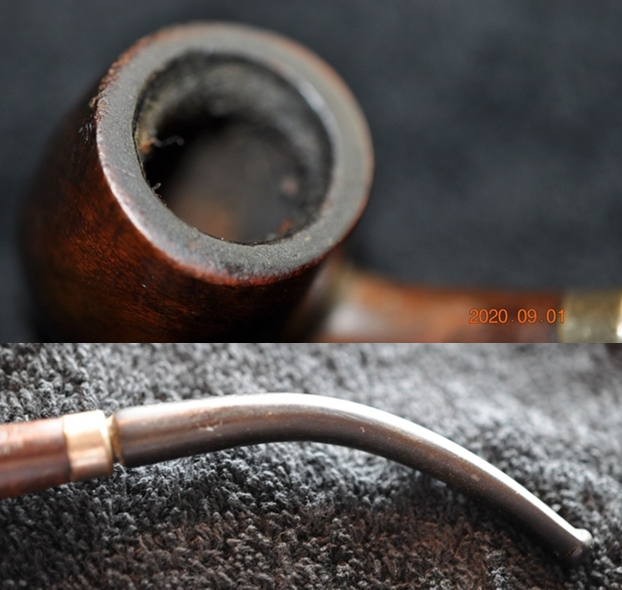 The next pipe on the work table came to us from an online auction in Kingman, Arizona, USA. The pipe is an interesting tiny bent pot. It could easily have been another salesman’s sample for Wm Demuth & Co. an American Briar maker but I have no way of knowing for sure. The orific button and the style of the stem contribute to my belief that this is an older pipe. The pipe is smoothly finished Bent Billiard shaped bowl. The pipe is stamped on the left side of the shank and reads WDC in a triangle and next to that it reads Studio [over] Italian Briar. There was grime and dust ground into the finish of the briar. The nickel band was oxidized and dull. The bowl was heavily caked while the top and inner edge of the rim had a coat of lava. The curved vulcanite taper stem was lightly oxidized, calcified and had tooth chatter and marks on the top and underside near the button. This was a tiny pipe and one that I would have thought could easily have been unsmoked. But in this case it must have been someone’s favourite smoker because it was smoked hard and often from the looks of it. The tiny pipe looked like it would be an interesting one to clean up. It showed a lot of promise but it was very dirty. Jeff took some photos of the pipe before he started his cleanup work.   He took photos of the rim top and bowl to give a clear picture of the thickness of the cake and tobacco debris as well as the lava on the top and inner edge of the rim. He also took photos of the top and underside of the stem. The shank was too dirty for the stem to fit in correctly. The photos show the overall condition of the stem. Jeff took photos of the sides and heel of the bowl to give a picture of what the briar looked like. It really does not look like briar but more like a hard wood which would also be another argument for it being a salesman’s sample pipe. The nickel band should look great once it is polished. The stamping on the left side of the shank is clear and readable and read as noted above.Jeff had cleaned up the pipe with his usual penchant for thoroughness. He reamed the pipe with a Savinelli Fitsall Pipe Knife as the bowl was too small for even the smallest PipNet reaming head.  He scrubbed the bowl with undiluted Murphy’s Oil Soap with a tooth brush. He rinsed it under running warm water to remove the soap and grime. He cleaned out the inside of the shank and the airway in the stem with alcohol, cotton swabs and pipe cleaners. He soaked the stem in a Before & After Deoxidizer bath and rinsed it off with warm water. I took photos of the pipe before I started my part of the restoration work. The rim top cleaned up really well. The rim top, inner and outer edges of the bowl are in excellent condition. The stem surface looked very good with a few tooth marks and chatter on both sides near the button.   The stamping on the shank side is clear and readable. It is stamped as noted above.  I removed the stem and took a photo of the pipe to give a sense of the whole. The taper stem is nice and the photo gives a sense of what the pipe looks like. I started my work on this little pipe by addressing a flaw in the wood on the front of the bowl. I filled it in with briar dust and super glue. Once the repair cured I sanded it with 220 grit sandpaper to smooth it out. I stained the repair on the front of the bowl with  a walnut stain pen. I sanded the bowl smooth with 1500-3200 grit micromesh sanding pads (I forgot to take photos of that process). I stained the pipe with a dark brown aniline stain, flamed it to set it in the grain and repeated the process until I was happy with the coverage.   I rubbed the bowl and shank down with Before & After Restoration Balm. I worked it into the surface of the bowl sides and shank with my fingertips to clean, enliven and protect the briar. I let the balm sit for about 10-15 minutes and buffed with a cotton cloth to raise the shine. The grain came alive and the fills while visible look better than when I began.     I set the bowl aside and turned to work on the stem. I polished the vulcanite stem with micromesh sanding pads – 1500-12000 grit pads. I wiped it down with Obsidian Oil after each sanding pad. I used Before & After Pipe Polish – both Fine and Extra Fine to further polish the stem. This Tiny WDC Studio Italian Briar Bent Billiard is a great looking little pipe now that it has been restored. The rich brown stain gives the bowl depth and elegance. The flow of the bowl and stem are well done make for a great hand feel or maybe I should say “finger” feel. The polished nickel band looks very good with the brown briar and polished vulcanite stem. I put the stem back on the bowl and carefully buffed the pipe with Blue Diamond on the buffing wheel using a light touch on the briar. I gave the bowl and the stem multiple coats of carnauba wax on the buffing wheel and followed that by buffing the entire pipe with a clean buffing pad. I hand buffed the pipe with a microfiber cloth to deepen the shine.  Once I was finished the bowl and a matte look to it that I liked. The finished WDC Studio Bent Billiard fits nicely in the hand and feels great. Give the finished pipe a look in the photos below. The dimensions of the pipe are Length: 4 ¾ inches, Height: 1 ¼ inch, Outside diameter of the bowl: 1 inch, Chamber diameter: 5/8 of an inch. The weight of this pipe is 18 grams/.63oz. I will be putting it on the rebornpipes store shortly. If you are interested in adding this pipe to your collection send me a message or an email. Thanks for reading this blog and my reflections on the pipe while I worked on it. There are many more to come!