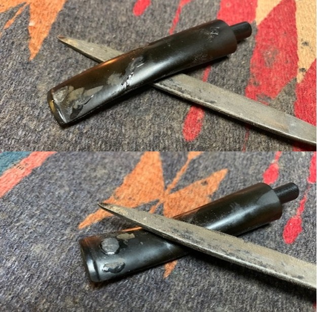I took a photo of the shank end to show the relative thinness of the right side of the shank. I wonder if this was not also a reason the pipe was a second.