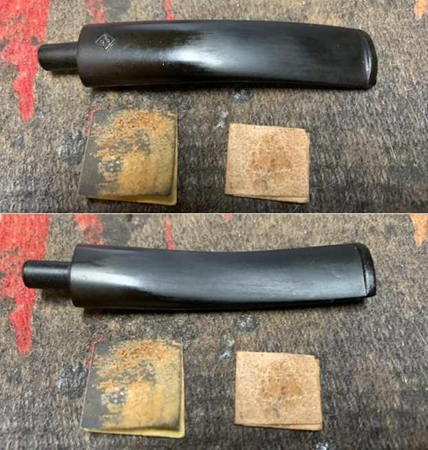 I polished the vulcanite stem with micromesh sanding pads – 1500-12000 grit pads. I wiped it down with Obsidian Oil after each sanding pad. I used Before & After Pipe Polish – both Fine and Extra Fine to further polish the stem.