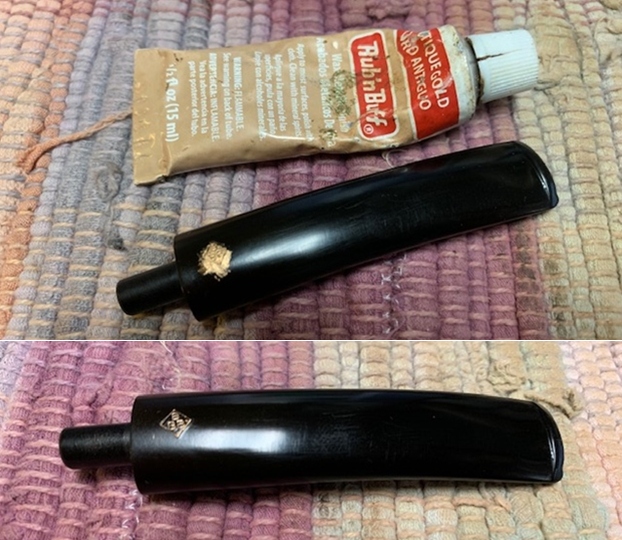 I combined a Cherry and a Walnut stain pen to blend the topped rim to match the rest of the bowl and shank.