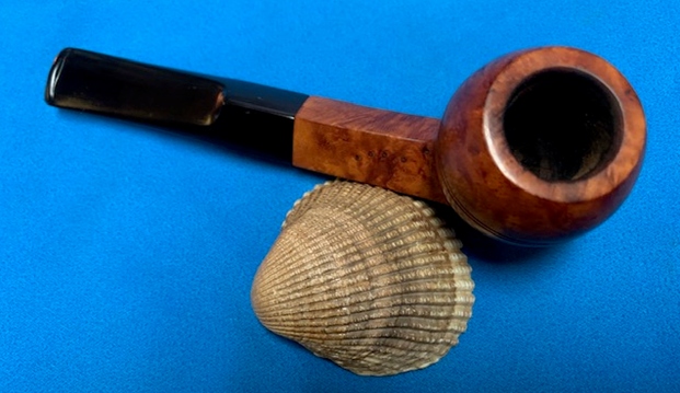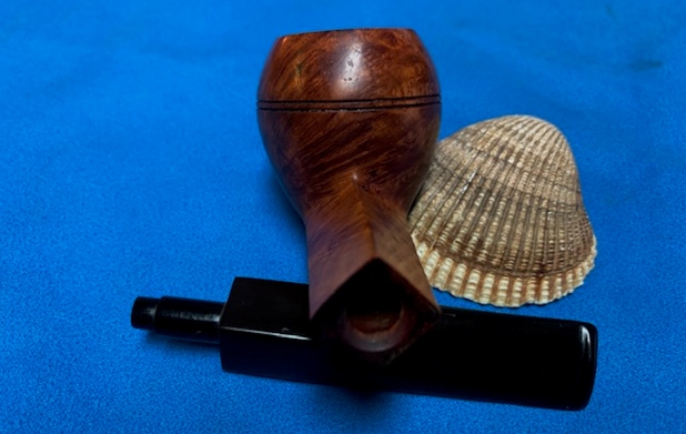 The pipe is stamped on the left side of the shank, Waldorf [over] Super as pictured below. On the right side it is stamped Imported Briar [over] Made in France. Under that is stamped shape number 102MS. In checking on Pipephil’s site on the Waldorf brand it appears that there is a connection to WDC (http://www.pipephil.eu/logos/en/logo-w1.html). WDC is the American Company William Demuth Company. The stem has the same logo as Phil shows on his site though the pipe in hand has much fainter stamping.