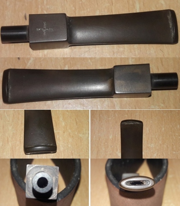 The moment I saw and held the stem in my hands, I was not sure if the stem was vulcanite or made of some plastic derivative. It was very light weight and considerably harder than vulcanite. It was lightly oxidized and had minor tooth chatter on either surface in the bite zone. The button edges on either surface are slightly deformed with tooth indentations. I shall not risk heating the bite zone with the flame of a lighter to raise the tooth chatter but would rather try and sand it out. In case required, I shall further use charcoal and superglue mix to address this issue. I need to sharpen the button edges and shall do so with a flat needle file.