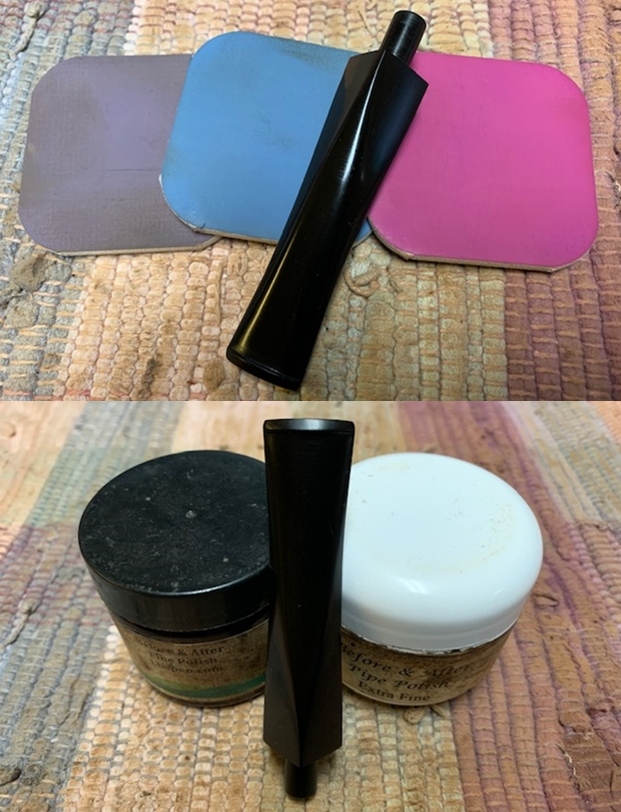 I completed the polishing cycle of the stem by wet sanding the surface with 1500 to 12000 girt pads. The stem looks great with the tooth chatter nicely matched with the rest of the surface. I also polished the aluminum stinger and the spacer ring with micromesh pads. I gave a final rub with “Before and After Extra Fine” stem polish compound to remove fine scratches from the stem surface. I rub a little quantity of Extra Virgin Olive oil in to the stem surface and set it aside to be absorbed by the vulcanite. The stem polished up nicely and I am happy with the appearance of the stem at this point in restoration.