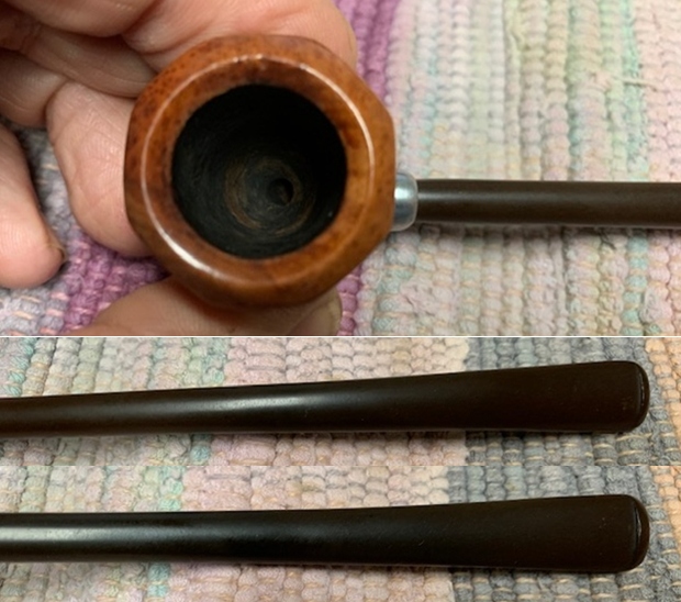 I took photos of the condition of the rim top and stem before I started working. The rim top looks better than before and other than some slight darkening there is no other damage. The bowl is spotless. The stem is lightly oxidized and has some major damage on the underside at the button.