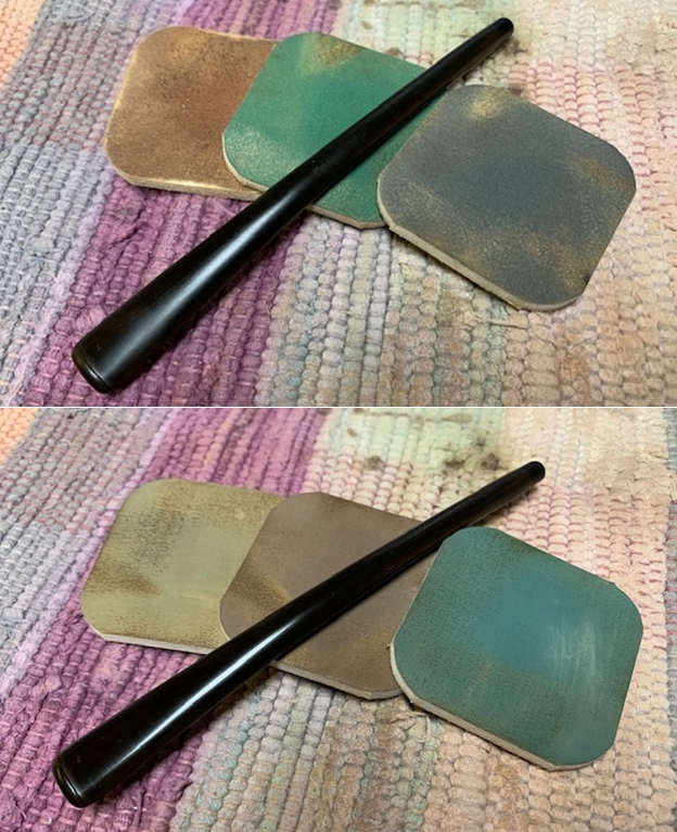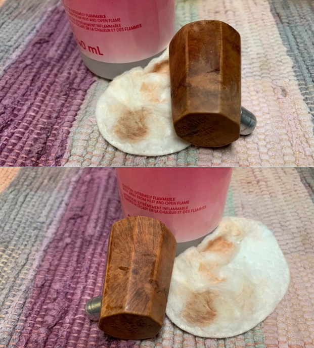 I sanded the repaired area and the rest of the stem with 220 grit sandpaper and reshaped the button edges. I started polishing the stem with 400 grit wet dry sandpaper.