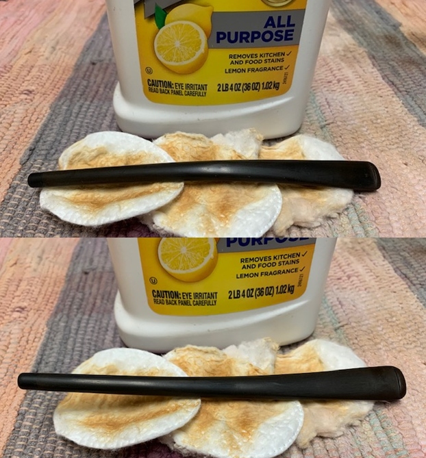 Jeff took a photo of the sides and heel of the bowl to show the condition of the finish. It has thick grime on the surface and ground into the finish.