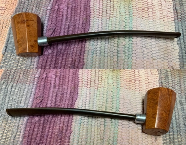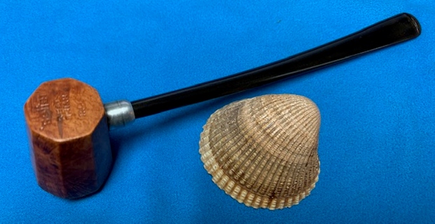 This pipe was a real mess like many of the pipes we work on. I was curious to see what it would look like when I unpacked it. I was surprised at how good it looked. Jeff reamed it with a PipNet pipe reamer and cleaned up the reaming with a Savinelli Fitsall Pipe Knife. He scrubbed out the internals of the shank and stem with alcohol, pipe cleaners and cotton swabs until the pipe was clean. He scrubbed the exterior of the bowl with Murphy’s Oil Soap and a tooth brush to remove the grime and grit on the briar and the lava on the rim top. The finish on the bowl looked really good when I got it. The rim top looked much better and the inner and outer edges were looking good. He soaked the stem in Before & After Deoxidizer bath to remove the oxidation. The stem looked better other than some light oxidation and the tooth marks and chatter in the surface. The chipped button on the underside of the stem was clean but very visible. When the pipe arrived here in Vancouver for the second stop of its restoration tour it looked very good. I took photos of the pipe before I started my work on it.