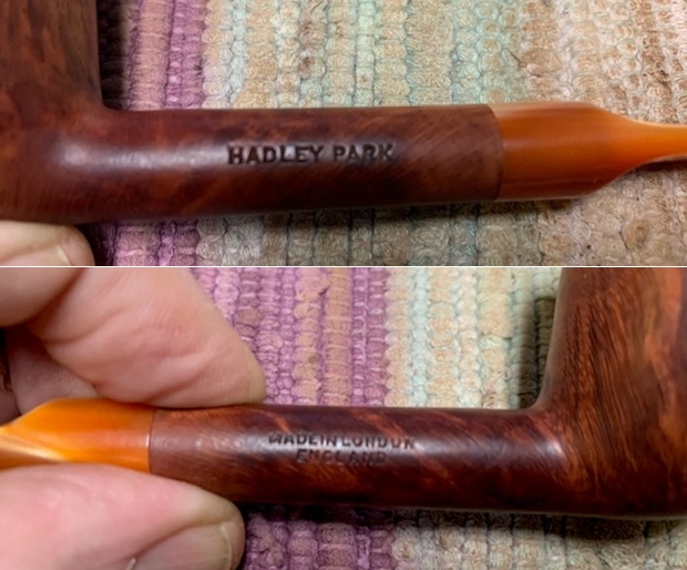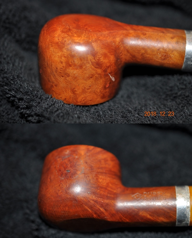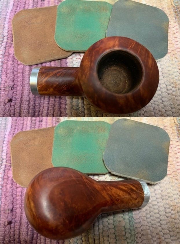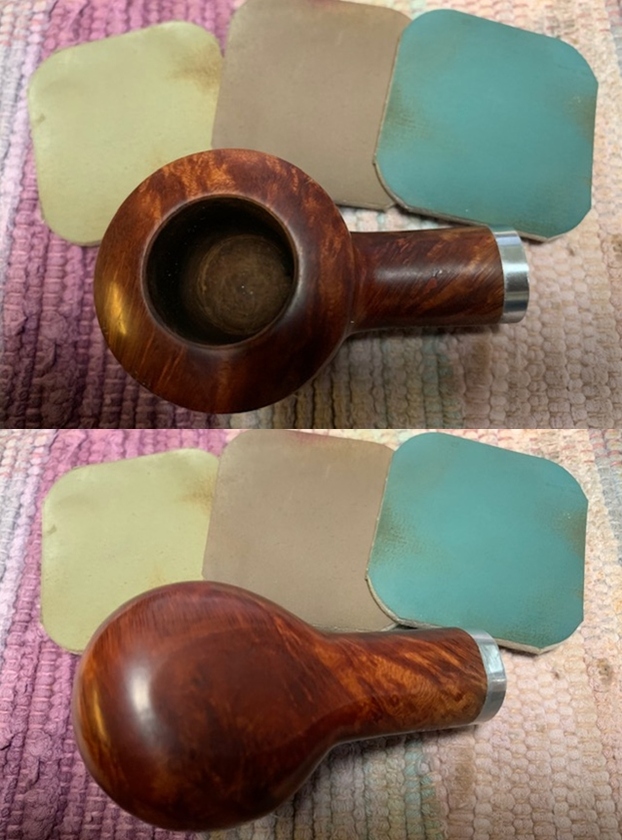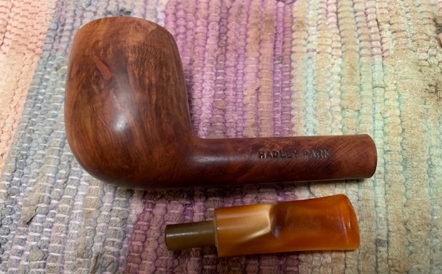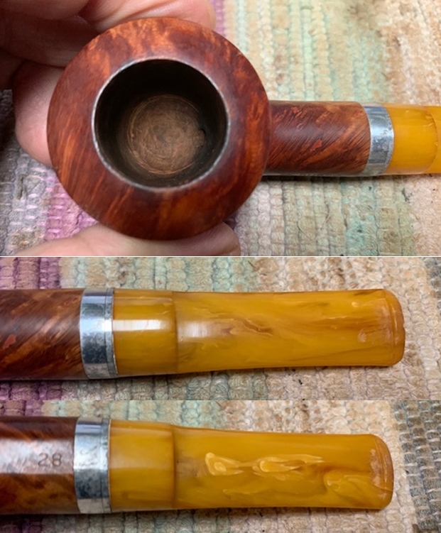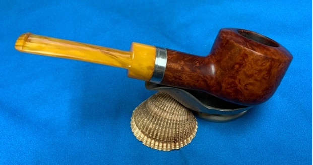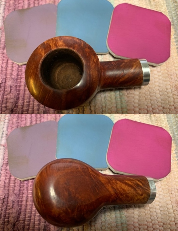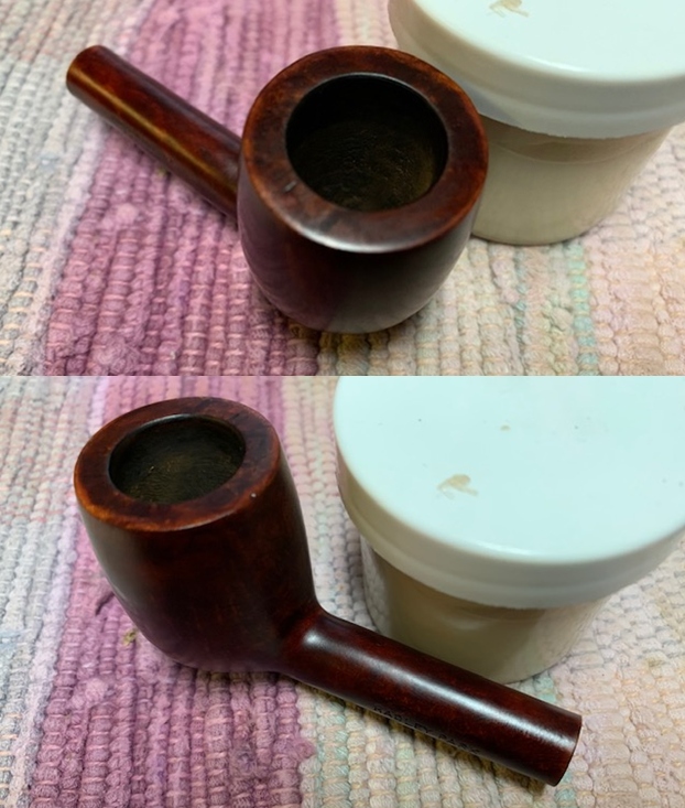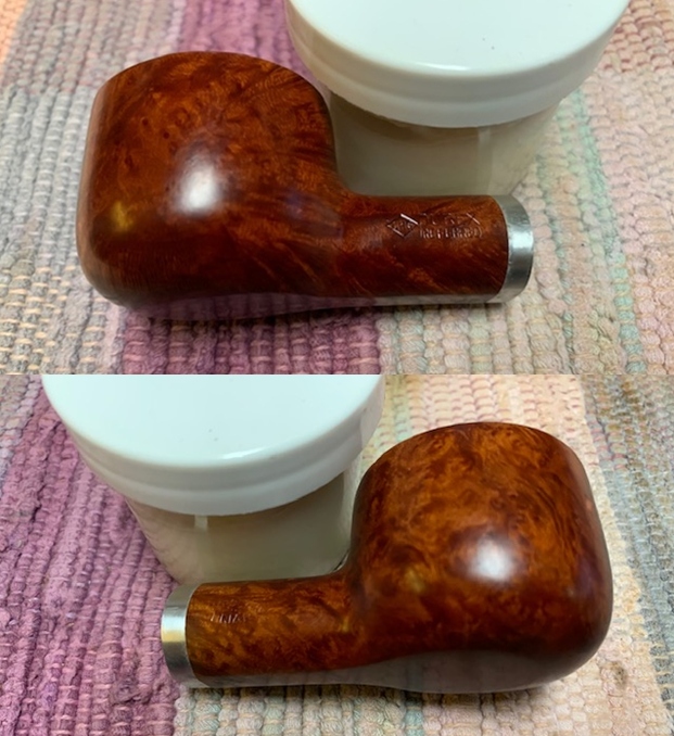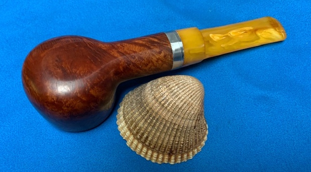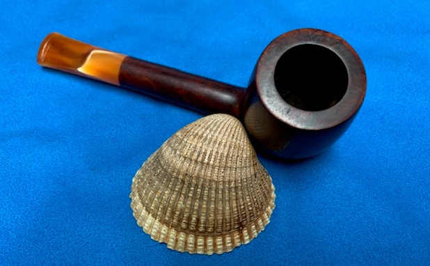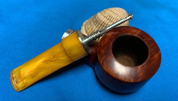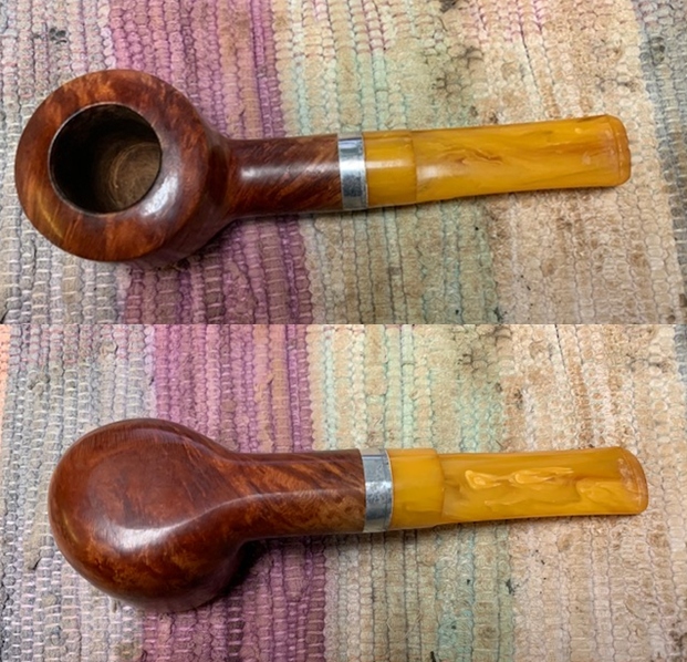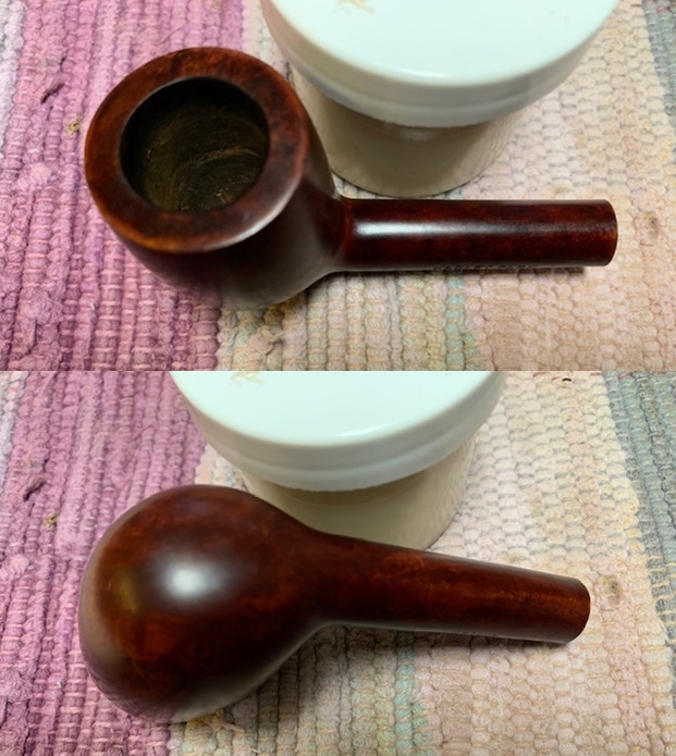 I removed the stem and took a photo of the pipe to give a sense of the whole. The stem is a compact Redmanol saddle.