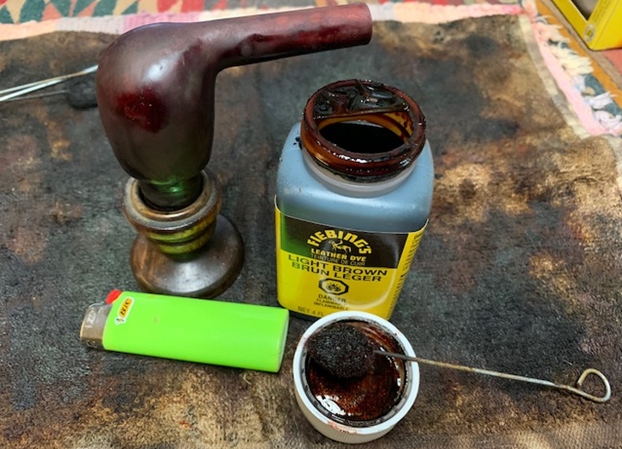 Now it was time to work on this interesting old pipe with the Redmanol man made amber stem.