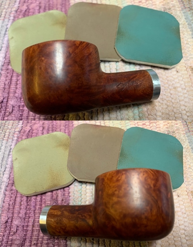 I polished the repairs on the Redmanol stem with micromesh sanding pads – 1500-12000 grit pads. I wiped it down with a damp cloth after each sanding pad. I used Before & After Pipe Polish – both Fine and Extra Fine to further polish the stem.