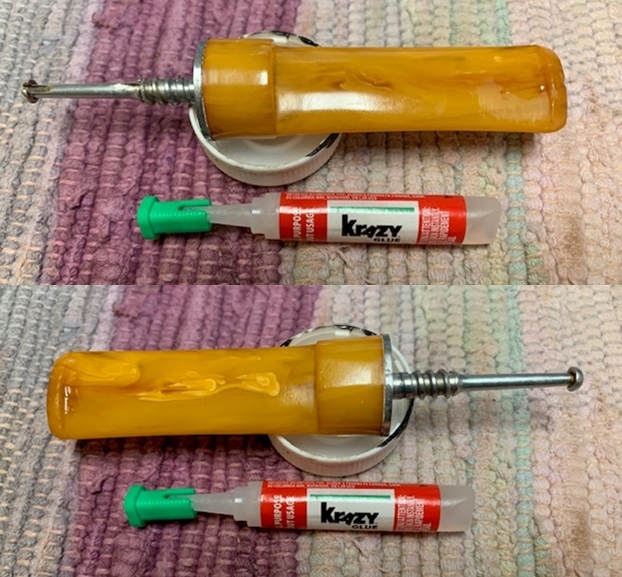 I set the bowl aside and turned to work on the stem. I filled in the deep tooth marks on the surface of the Redmanol with clear super glue. I let the repairs cure.