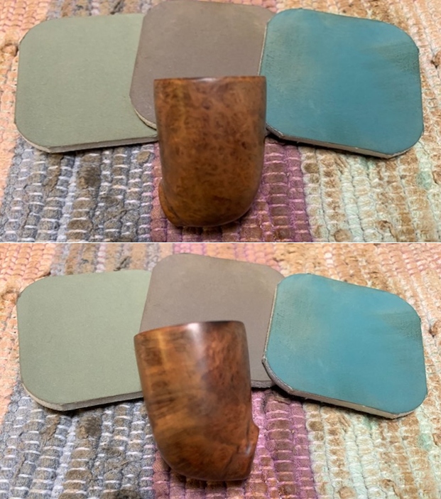 I rubbed the bowl down with Before & After Restoration Balm. I worked it into the surface of the bowl sides and shank with my fingertips to clean, enliven and protect the briar. I let the balm sit for 15 minutes and buffed with a cotton cloth to raise the shine. The grain came alive.