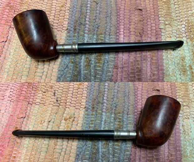 This Billiard Shaped Bowl on a Don Style Pipe is a great looking pipe now that it has been restored and the stem reshaped. The grain around the bowl is quite beautiful and works well with both the shape and the polished vulcanite taper stem. I put the stem back on the bowl and carefully buffed the pipe with Blue Diamond on the buffing wheel using a light touch on the briar. I gave the bowl and the stem multiple coats of carnauba wax on the buffing wheel and followed that by buffing the entire pipe with a clean buffing pad. I hand buffed the pipe with a microfiber cloth to deepen the shine. The finished Don Style Billiard is another pipe that fits nicely in the hand and feels great. Give the finished pipe a look in the photos below. The dimensions of the pipe are Length: 5 ¼ inches, Height: 1 ½ inches, Outside diameter of the bowl: 1 1/8 inches, Chamber diameter: ¾ of an inch. The weight of the pipe is 16g/.60oz. I will be putting it on the rebornpipes store in the Metal and Other Types of Pipe Section shortly. If you are interested in adding this pipe to your collection send me a message or an email. Thanks for reading this blog and my reflections on the pipe while I worked on it. There are many more to come!