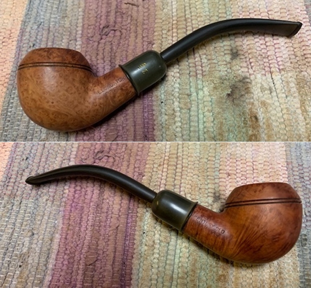 I touched up the Hand Cut stamp on the vulcanite ferrule with Rub’n Buff Antique Gold. I applied it into the stamp with a tooth pick and buffed off the excess with a cotton pad.
