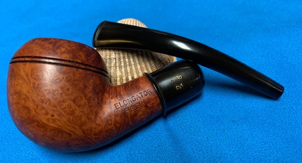 This beautiful Elongator Fireside Rhodesian with vulcanite military style stem is a great looking pipe now that it has been restored. I put the stem back on the bowl and carefully buffed the pipe with Blue Diamond on the buffing wheel using a light touch on the briar. I gave the bowl and the stem multiple coats of carnauba wax on the buffing wheel and followed that by buffing the entire pipe with a clean buffing pad. I hand buffed the pipe with a microfiber cloth to deepen the shine. The finished Elongator Rhodesian fits nicely in the hand and feels great. I can only guess what the “elongator” stem would be like. Give the finished pipe a look in the photos below. The dimensions of the pipe are Length: 6 1/2 inches, Height: 1 ¾ inches, Outside diameter of the bowl: 1 ½ inches, Chamber diameter: ¾ of an inch. The weight of the pipe is 46grams/1.62oz. It is an interesting pipe that I am going to hold on to for a while. I want to see if I can find an extension for the stem. Thanks for reading this blog and my reflections on the pipe while I worked on it. There are many more to come!
