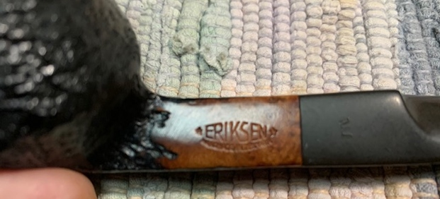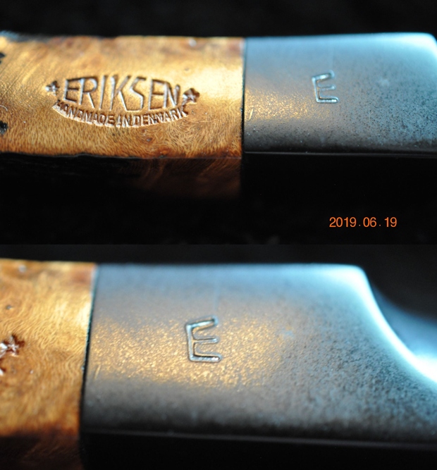 I turned to Pipephil’s site (http://www.pipephil.eu/logos/en/logo-e4.html) to the section on Eriksen pipes. The screen capture links the Eriksen brand to Erik Nording. The finish on the second pipe in the photo below is identical to the Nording Bulldog I am working on.