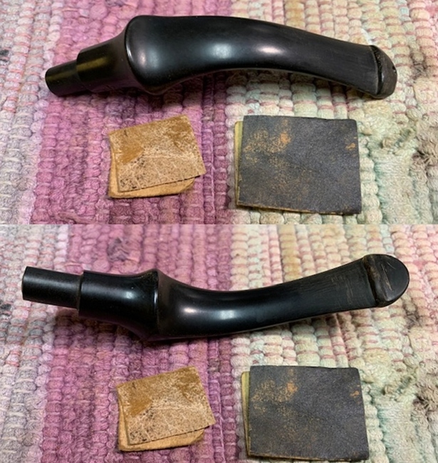 I polished the vulcanite stem with micromesh sanding pads – 1500-12000 grit pads. I wiped it down with a damp cloth after each sanding pad. I used Before & After Pipe Polish – both Fine and Extra Fine to further polish the stem.