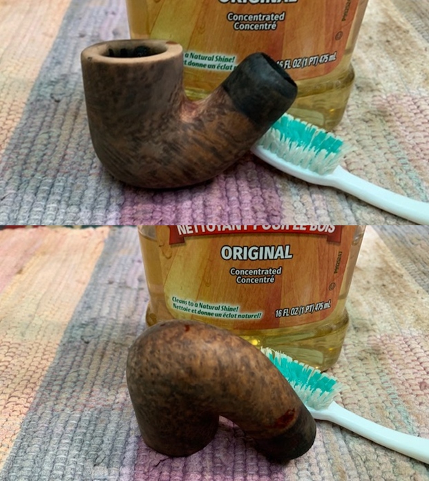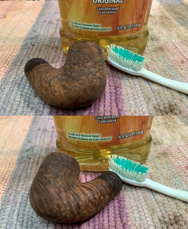 I scrubbed the pipe with undiluted Murphy’s Oil Soap and a tooth brush to remove the grime on the bowl and shank. I rinsed it off with warm running water and dried it off with a soft towel. The pictures show the grain around the sides of the pipe.