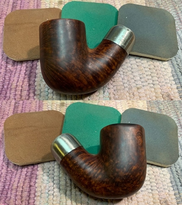 With the ferrule in place and the briar clean it was time to take photos of the pipe. While the rim top still shows damage on the right outer edge and inner edge it is significantly better than it was when I started.